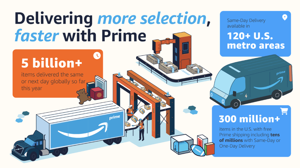 - investe em entregas no mesmo dia para 95% dos lares dos EUA